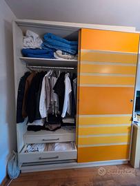 Vendo camera composta da armadio ( h240, L 200, , P 60), scrivania 200×60 h 80, due letti singoli senza rete e materassi. Tutto come da foto . Prodotto artigianale toscano in massello ,verniciatura a mano. . Ottime condizioni. Vendo anche separatamente. Con prezzi da concordare.