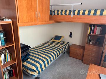 Camera da letto per bambini in buone condizioni compasta da letto a castello , 1 armadio, 1 comodino, 1 libreria, 1 cassettiera Smontaggio e trasporto a carico dell’acquirente Prezzo trattabile