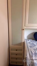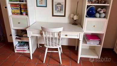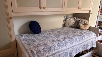 Vendo camera da letto completa di due letti da una piazza, ampio armadio a ponte e scrivania coordinata con la propria libreria. Misure dei letti: 207x90 Misure armadio: 297x58 Misure scrivania: 120x65 Misure libreria: 224x40 Smontaggio e spedizioni da concordare con l’acquirente