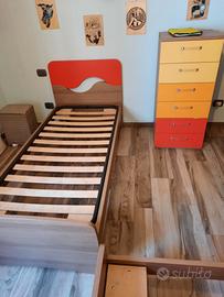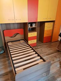 vendo per rinnovo arredamento, splendida camera completa per bambini -ragazzi .Il mobilio è in ottime condizioni e molto funzionale,ideale per ottimizzare gli spazi.La composizione comprende : armadio con quattro cassetti,2 settimanali,2 letti singoli con doghe in legno e una scrivania in coordinato. MISURA STRUTTURA ARMADIO: LUNGHEZZA 303 cm ALTEZZA 220.5 cm PROFONDITÀ 60 cm