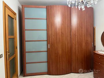 armadio a 3 ante scorrevoli, 2 comodini, comò componibile e letto matrimoniale