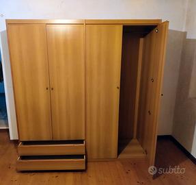 Vendo mobili camera in ottimo stato: 1 armadio, 1 scrivania/libreria 1 comodino 2 letti singoli con materassi e reti in buono stato per svuotamento casa, per le misure vedi foto.