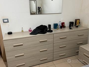 Vendesi camera da letto color olmo chiaro composta da letto matrimoniale 2 comodini a 2 cassetti 1 como grande con 3 cassettoni e armadio a 6 ante