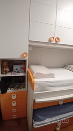 - Un letto a castello, con due ante una a destra e sinistra e altre due sopra il letto superiore,