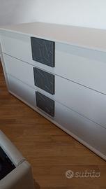 Vendesi splendida camera da letto completa, composta da letto contenitore, due comodini, un armadio a tre ante scorrevoli ( H 260 cm x L 280 cm x P 62 cm) e un comó (L 123 cm x H 68 cm x P 50 cm).