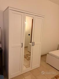 Camera da letto, 5 pezzi (letto, due comodini, armadio e cassettiera); nuova, effettuato solo montaggio. Possibilità di acquisto anche del materasso (valore € 300). Vendita per inutilizzo