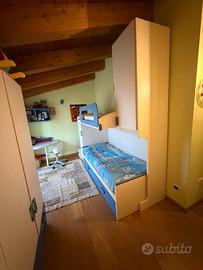 Vendo canera da letto per due bambini. È composta da letto a castello,amoio armadio e una scrivania per lo studio. La camera è in ottime conduzioni
