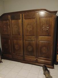 vendo camera artigianale in legno massiccio e pesante. lo smontaggio e il ritiro a cura di chi acquista, per quel motivo il prezzo non è realmente riferito ai mobili. la camera si compone di armadio, cassettone, specchio, letto e due comodini. prezzo non trattabile.