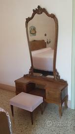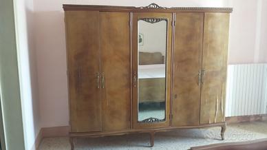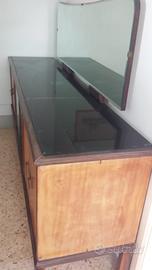 Vendo camera da letto matrimoniale completa di poltrona e sgabelli + buffet anni 50 in discreto stato, misure buffet: lunghezza 225 cm, profondita' 52 cm, h 89 cm.