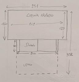 camera da letto completa tutto in uno. cabina armadio, letto e divano 2 sedute più impianto illuminazione interna.