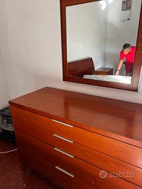 Vendo camera da letto in ciliegio composta da letto matrimoniale, armadio, comò, 2 comodini, sedia e specchio. Smontaggio e trasporto a carico dell’ acquirente.