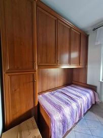 Vendo camera da letto completa di armadio 7 ante, comò, specchio e due comodini + cameretta a ponte + armadio due ante + mobile bagno. Tutto tinta noce. Ottime condizioni. Vendibili anche separatamente.