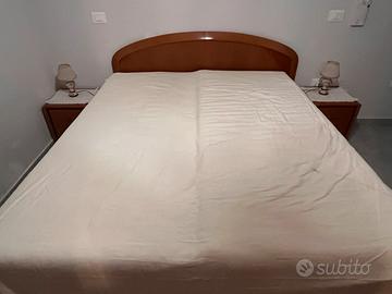 Camera da letto anni 50, tutta in legno, comprende armadio, comodini e testata del letto.