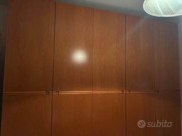 Vendo camera da letto in ottime condizioni color legno composta da due letti che formano un letto matrimoniale con reti e materassi, 2 comodini, 1 comò, un armadio alto