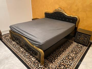 letto non contenitore in pelle nera con dettagli swaroski cornice color oro
