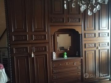 Camera da letto in legno colore noce scuro ben tenuta completa di letto armadio como e comodini