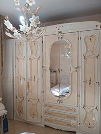 Camera da letto classica bianca in legno laccata. Senza letto e materasso. Pagamento in contanti al ritiro della merce