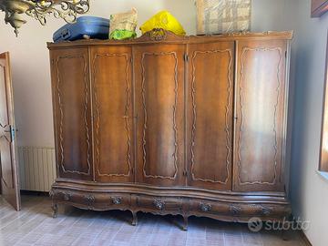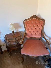 (con testiera capitonné, comò, comodini, specchiera e poltrone) Vendesi camera da letto classica di pregio, in legno massello finemente intagliato, stile Luigi XV / barocco, produzione italiana di alta qualità (anni ’50–’70). 🔹 COMPOSIZIONE Testiera letto importante, imbottita e capitonné Comò coordinato con intagli decorativi 2 comodini abbinati Specchiera intagliata coordinata 2 poltrone imbottite con braccioli e schienale capitonné ⚠️ ATTENZIONE: il letto è privo di giroletto (è presente solo la testiera). 🔹 CONDIZIONI Struttura in ottimo stato Legno sano, stabile, senza tarli Tessuti originali, da rinfrescare o rifare secondo gusto personale (ottima base per restauro o valorizzazione) 🔹 IDEALE PER Amanti dell’arredo classico Case di rappresentanza B&B / dimore storiche Restauro e rivendita 💰 PREZZO € 999 👉 Valuto anche vendita in blocco o offerte serie 📍 Ritiro a carico dell’acquirente 📸 Foto aggiuntive disponibili su richiesta