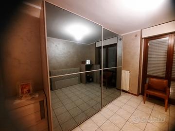 Armadio di ottimo legno con due ante scorrevoli in specchio fume' 275×240 cm