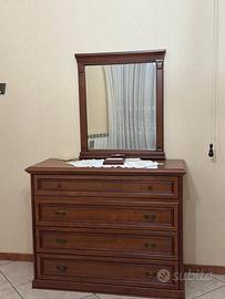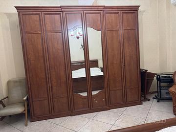 Camera da letto con: Armadio lung.270 cm alt. 250 cm prof. 60 cm; Comò lung. 130 cm - H 105 cm - prof. 53 cm; 2 Comodini lung. 56 cm H 70 cm prof. 41 cm, Letto larg. 174 cm lung. 215 cm; Lampadario e 2 abajour in vetro.