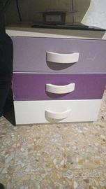 Vendo camera completa con 2 letti singoli e armadio a ponte, completa di 2 reti e 2 materassi, 1 cassettiera a 3 cassetti, 1 scrivania in appoggio su cassettiera a 3 cassetti.