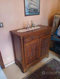 Camera da letto con due letti a scomparsa ad una piazza adatta ad esempio per due fratelli. Con capiente libreria, divano e due poltrone. I mobili tutti in legno, presentano lavorazioni in rilievo. Prezzo trattabile. Smontaggio e trasporto a carico dell'acquirente.