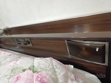 vendo arredo camera da letto completa fornita di struttura letto( senza reti e materasso)con comodini armadio grande e piccolo abbinati in legno laccato marrone scuro non presenta strisci e ammaccature.Il letto è fornito di radio funzionante e lampade integrate in stile vintage