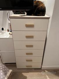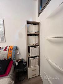 Camera da letto completa: letto matrimoniale contenitore, 2 comodini, libreria con cassetti, cassettiera, armadio a 4 ante.