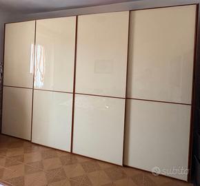 -Armadio 4 ante scorrevoli color teak e ante in color panna