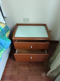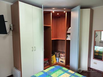 CAMERA DA LETTO COMPLETA: letto contenitore + due comodini L60xP41xH50 + cassettiera L120xP51xH86 + Cabina Armadio ad angolo 1Lato muro 255cm e 2Lato muro 200cm , H260 con faretti interni. Smontaggio e trasporto a carico dell'acquirente