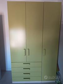 Letto contenitore 1 piazza e 1/2 Armadio 3 ante 4 cassetti con appendiabiti Comodino Scrivania Vendibile anche separatamente