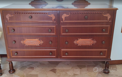 Vendo un prestigioso set da camera da letto completo, in stile classico-signorile, realizzato in pregiato legno di noce con splendidi intagli artigianali coordinati. Il set è in ottime condizioni, ben curato e solido. Le foto mostrano i singoli pezzi, ma sottolineo che si tratta di un set coordinato nato insieme. L'impatto estetico della camera arredata è notevole.Il set completo comprende: 1.Imponente Armadio (6 Ante): Molto capiente, con decorazioni coordinate e originali nappe decorative. MISURE: 294x59,5 ,185 h. Internamente presenta: doppio Specchio Interno: Due specchi serigrafati montati sulle ante centrali. Cassettiera Interna Integrata. Organizzazione: Ampi spazi per appendere e ripiani robusti. Legno in condizioni eccellenti anche internamente. 2.Letto Matrimoniale: Testiera finemente lavorata con medaglione centrale. MISURE: 166x203 ,60h 3.Comò Grande (8 Cassetti): Molto capiente, con 8 cassetti. MISURE: 131x47 ,84h 4.2 Comodini: Abbinati, robusti e funzionali. MISURE: 56x33 ,55h 5.Splendido Specchio da Comò: Con cornice in legno lavorata e colonne a tortiglione. 6.Coppia di Poltrone: Coordinate nello stile, rivestite in pregiato tessuto damascato con frange decorative. Perfette per un angolo relax o lettura. OPZIONI D'ACQUISTO: A) SET COMPLETO: Vendo tutto in blocco a 2600€ (trattabili).È la soluzione ideale per chi cerca un'intera stanza coordinata senza stress. B) ACQUISTO PEZZI SINGOLI: Valuto offerte per i seguenti pezzi separatamente (contattare per prezzi individuali). INFO IMPORTANTI: 1- I mobili si trovano a Vedano Olona, al 1° piano di una casa indipendente con spazio per entrare con un furgone. 2- Smontaggio e trasporto sono a totale carico dell'acquirente. (È necessario essere organizzati). 3-Disponibile per visione senza impegno previa appuntamento. 4-Formula Visto e Piaciuto tra privati. SOLO PERSONE INTERESSATE A MOBILI DI QUALITÀ.PER INFORMAZIONI O ALTRE FOTO SPECIFICHE, NON ESITATE A CONTATTARMI VIA CHAT O TELEFONO.