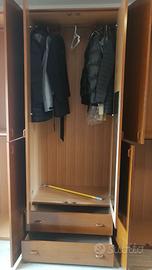 Vendesi camera da letto usata color noce composta da Armadio 6 ante con specchio interno + cassetti ,Comò a 4 cassetti e specchiera ,due comodini con cassetti +telaio letto con spalliera vendita causa trasloco