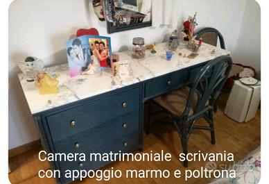 si tratta di camera da letto di alto valore comprensiva di letto, console e comodini con copertura in marmo. due grandi ante per armadio a muro e poltroncine.