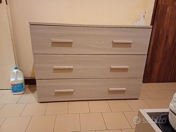 una cassettiera con specchio.