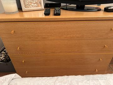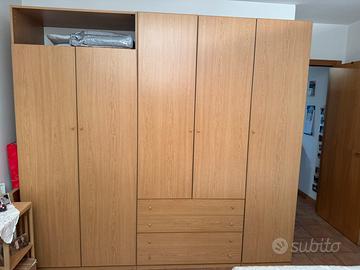 Letto matrimoniale con testata in legno grigio chiato compreso di materasso Armadio 5 ante con 3 cassetti Misure 2,50mt H x 2,3mt L Lettino singolo bianco com contenitore piu materasso Cassettiera 4 cassetti 1mt L x 70cm H