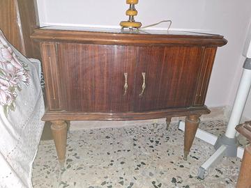 Camera da letto composta da 2 comodini,testiera letto matrimoniale e specchio como degli anni 50.In buono stato di conservazione.Prezzo si intende a blocco.No spedizione