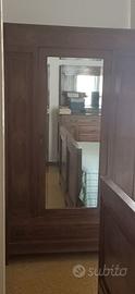 vendo camera da letto completa degli anni 20 tutta in legno finitura noce, realizzata artigianalmente a mano. in ottimo stato. composta da armadio con specchio esterno, comò cassettiera con piano in marmo nero, 2 comodini con piano in marmo nero, 2 letti che formano letto matrimoniale.
