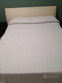 - Letto matrimoniale in ecopelle di con testiera imbottita color perla