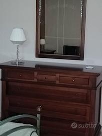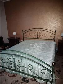 Camera da letto completa. Ottime condizioni. Ampio armadio con 5 ante battenti , colore panna. Comò e comodini colore noce scuro. Letto in ferro battuto colore verde salvia