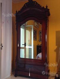 Vendo camera da letto completa fine 800', composta da armadio con cassettone con una sola anta, como' con cassettoni con specchio e marmo, coppia di comodini con relativo marmo.