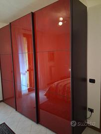 armadio 3 ante colore legno e rosso bordeaux lucido con cassettiera letto e 2 comodini 3 anni di vita