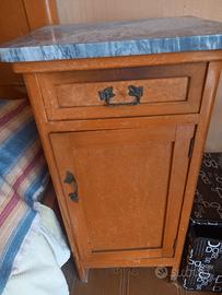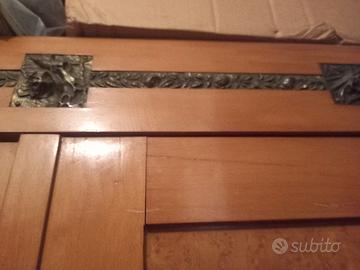 camera vintage anni 50 in legno con decorazioni in ferro. completa di letto e comodino con ripiano in marmo + armadio con cassetto e specchio + comò con 4 cassetti e specchio. regalo perché devo sgombrare casa.