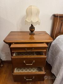- 2 Comodini in legno massello con 3 cassetti in perfette condizioni con abat jour