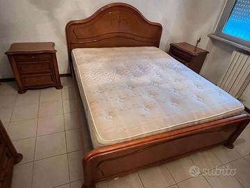 Camera da letto completa in legno massello color noce lucido COMPOSIZIONE: - Armadio (con specchio centrale), misure 290x257 cm - Comò, misure 142x100 cm - N2 comodini, misure 65x64 cm - letto, misure 175x208 cm - specchio NO SPEDIZIONE. TRASPORTO E SMONTAGGIO A CARICO DELL'ACQUIRENTE Nota: una maniglia è saltata va riavvitata (la maniglia è presente nel mobile)