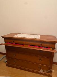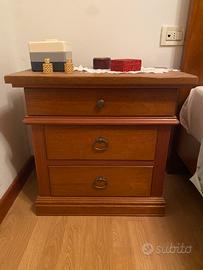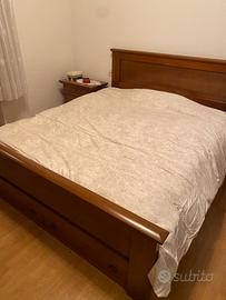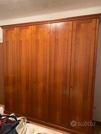 Camera da letto completa in legno – armadio, letto matrimoniale, comò e comodini Vendo camera da letto completa in legno stile classico composta da: - Armadio grande capiente - Letto matrimoniale con due cassetti sulla parte davanti - Comò con cassetto portagioie nascosto rivestito in velluto - 2 comodini abbinati I mobili sono solidi e in buone condizioni generali, con normali segni di usura dovuti al tempo. Ideale per arredare una camera completa o per seconda casa. Prezzo: 480 € trattabili Ritiro a Cervignano del Friuli.