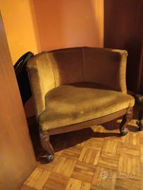 Camera da letto in radica di noce stile chippendale, lavorata a mano. Comprende: armadio a tre ante, letto, due comodini, comò con specchio e due poltrone