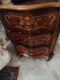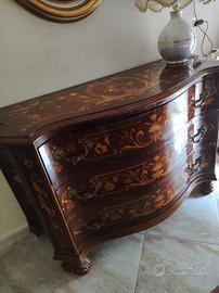 - Comò bombato con intarsi e decorazioni floreali