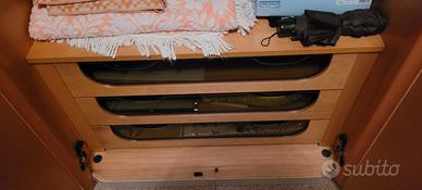 Come da foto, vendo camera da letto marca Doimo completa di armadio con cassettiera interna, comò con specchio, due comodini con vassoio estraibile, due letti che uniti formano un letto matrimoniale. Usata ma tenuta bene.