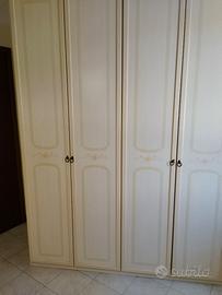 Armadio 4 ante e cassettiera interna (180 larghezza 60 profondità altezza 240) letto da una piazza e mezza compreso di rete e materasso, settimino (45 profondità 60 larghezza 130 altezza)